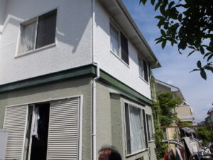 今回の外壁塗装工事では、お客様のご要望に合わせてカラーシミュレーションを実施し、いくつかのパターンの中から最適な色合いをお選びいただきました。外壁は凹凸のあるデザインが特徴的で、塗装の際にはその質感を活かすため、塗料の選定や施工方法にもこだわりました。仕上がりは、建物本来の立体感がより際立ち、上質な印象に生まれ変わりました。